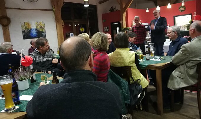 Mit einem Dankeswort an alle Anwesenden eröffnete der Vorsitzende Reiner Rosendahl den Abend. Nachdem sich die Mitglieder mit einem leckeren Essen gestärkt hatten, gab Peter Kolshorn über die ehrenamtlich geleisteten Arbeiten mit vielen interessanten Bildern und Erklärungen einen Überblick vom vergangenen Jahr. Die Willicher Gruppe war wieder sehr stark vertreten und Monika Sandrock hatte einen kleinen Filmbeitrag über die Aktivitäten des NABU Willich zusammengestellt. Der Informationsaustausch innerhalb der NABU Gruppen des Bezirksverbandes wurde mit interessanten Gesprächen genutzt. Mit 10.000 Mitgliedern ist unser Bezirksverband NABU Krefeld/Viersen der größte in NRW.