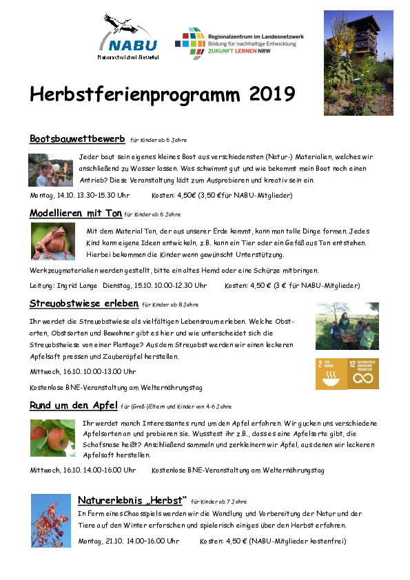 In der ersten und zweiten Herbstferienwoche startet auf dem Naturschutzhof das Ferienprogramm für Kinder ab vier Jahren .Eine bunte Mischung aus Naturerlebnisveranstaltungen bietet die Möglichkeit, sich spielerisch mit unserer Natur zu beschäftigen und spannenden Fragen gemeinsam auf den Grund zu gehen.
