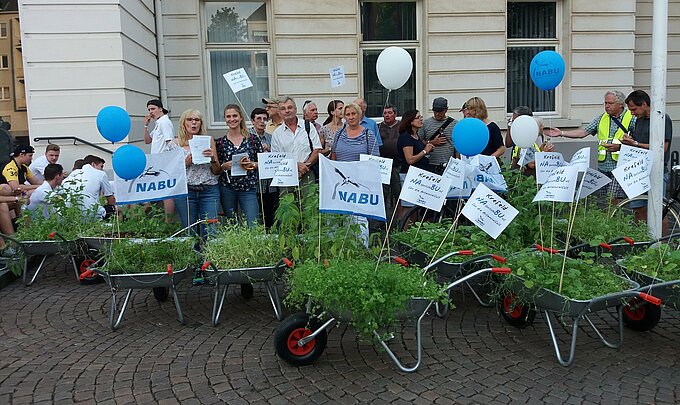 Dabei wurden insgesamt 120 Schubkarren, in denen Wildblumenbeete angelegt worden waren, von Vertretern diverser Krefelder Vereine in die Krefelder Innenstadt geschoben und dort verteilt. Die mobilen Biotope sind nicht nur Dekoration für das Modedesign-Festival „Krefelder Laufmasche“, sondern dienen auch als Nahrungsquelle für Schmetterlinge, Bienen und andere Insekten.