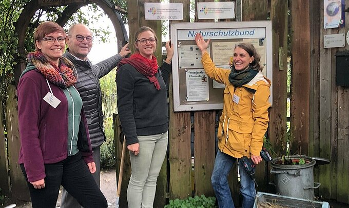 Herr Post gratuliert dem Naturschutzhof-Team zur Zertifizierung.